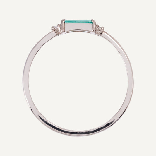 ANILLO ESMERALDA BAGUETTE Y DIAMANTES REDONDOS EN ORO 18K