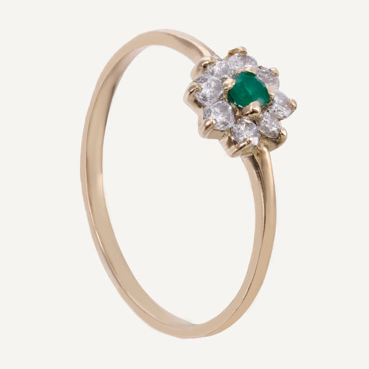 ANILLO FLOR ESMERALDA Y DIAMANTES EN ORO AMARILLO 18K